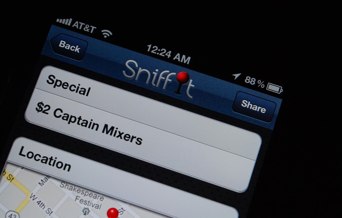 SniffIt was a mobile application which kept users up to date with the best specials and deals around town on food, drinks, events, and more.